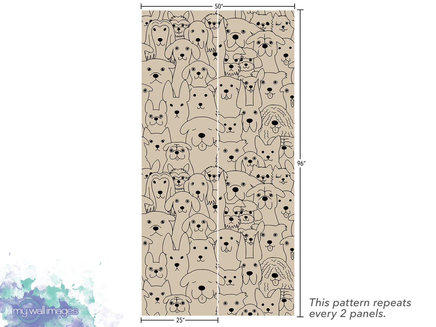 Playful Puppies Tan - Peel and Stick Wallpaper - Natural Wall Covering - Wall Mural - Removable Wallpaper - Wall Decor - Accent Wall, MW2315