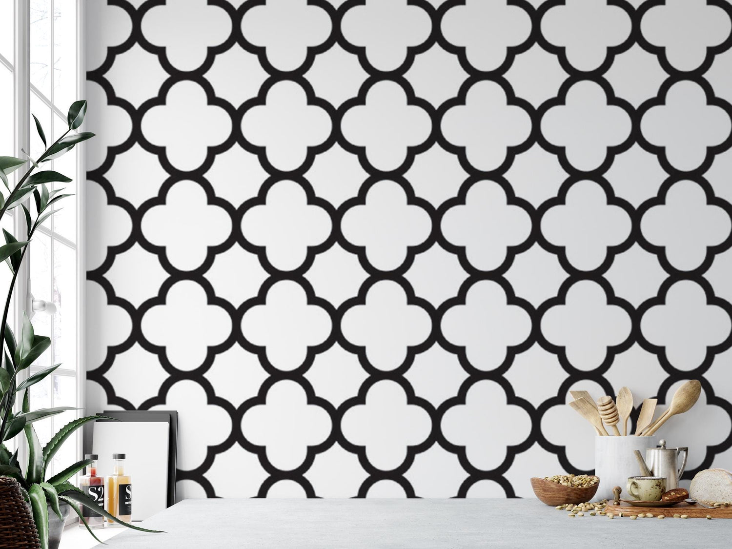 Quatrefoil Geometric Black and White Removable Wallpaper, Wall Art, Peel and Stick Wallpaper, Room Decor, Scandinavian Wallpaper
