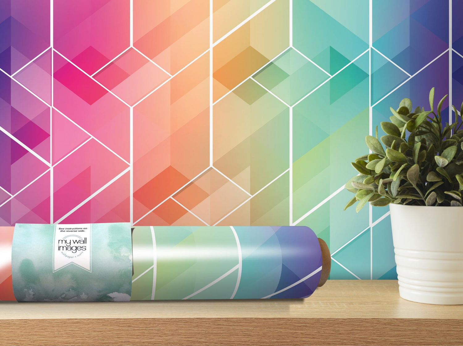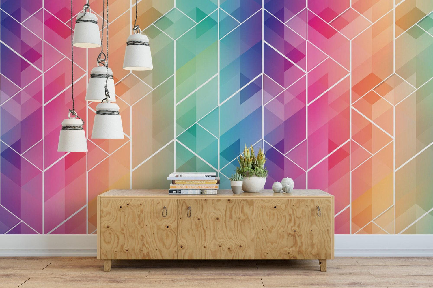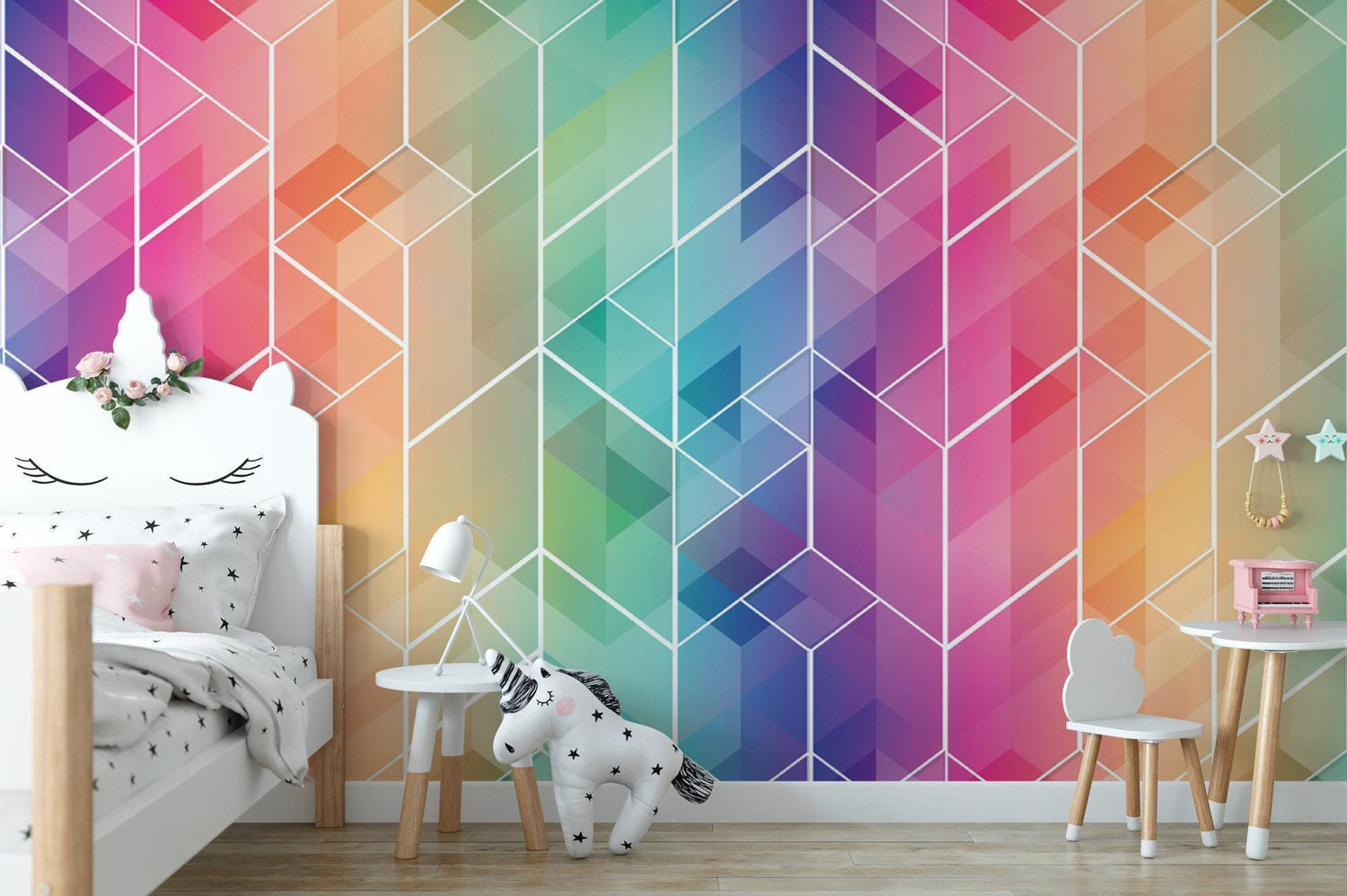Rainbow Color Mosaic Removable Wallpaper, Wall Art, Peel and Stick Wallpaper, Geometric Modern Rainbow Wallpaper, Girls Room Decor