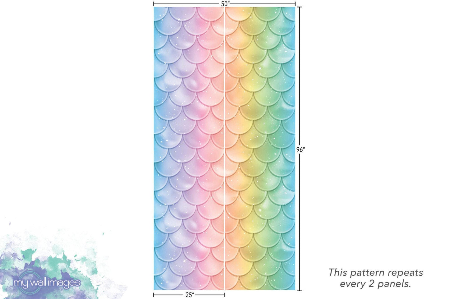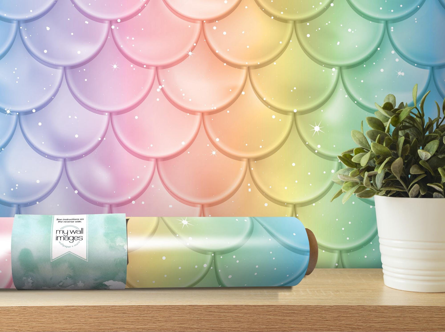 Rainbow Mermaid Scales Removable Wallpaper, Wall Art, Peel and Stick Wallpaper, Room Decor, Girls Room, Mermaid Wall, Nursery Decor