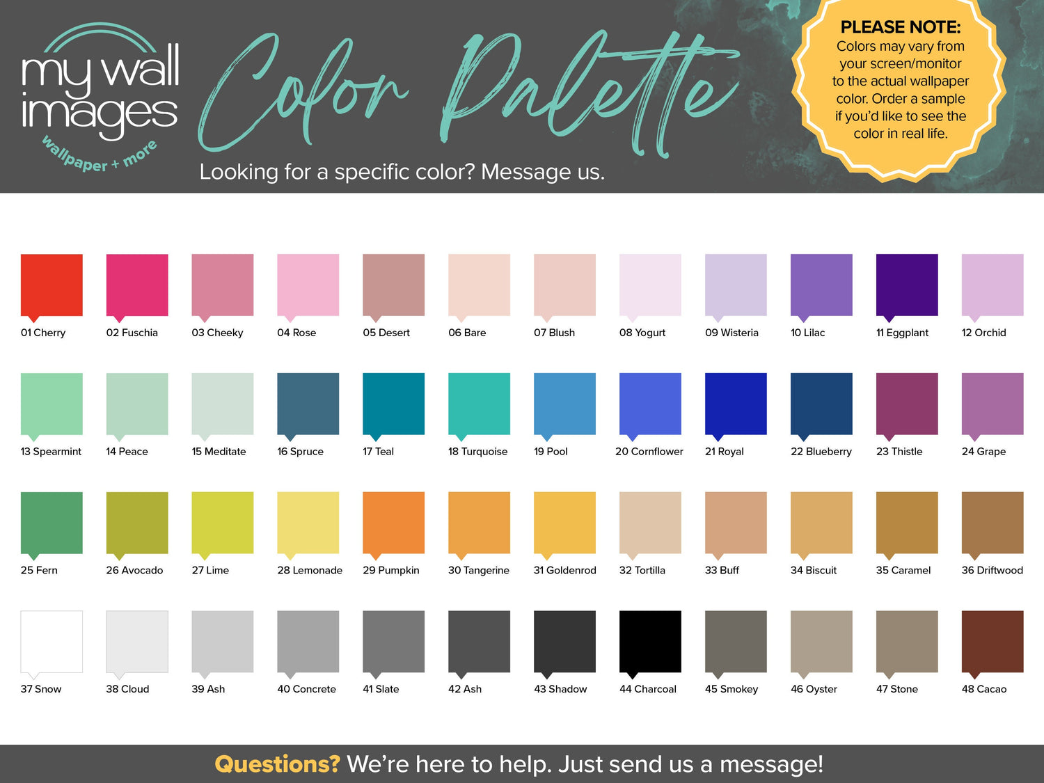 The colors you see on your screen may vary from the actual printed wallpaper.