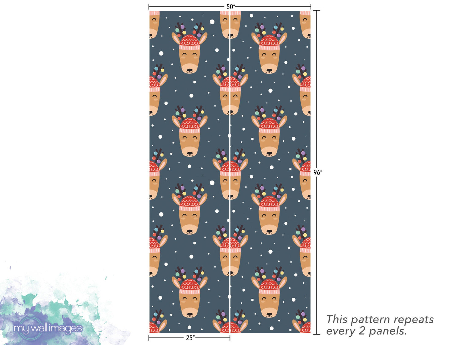 Reindeer with Lights Removable Wallpaper, Wall Art, Peel and Stick Wallpaper, Mural, Accent Wall Holiday Wallpaper, MW1671