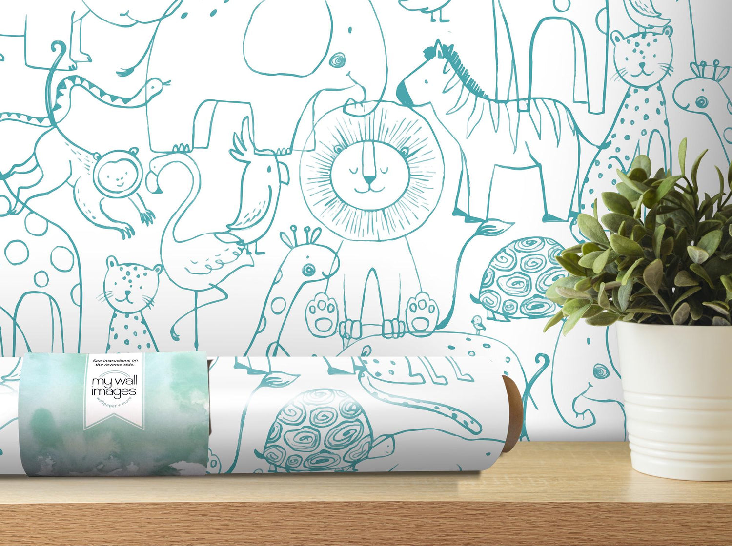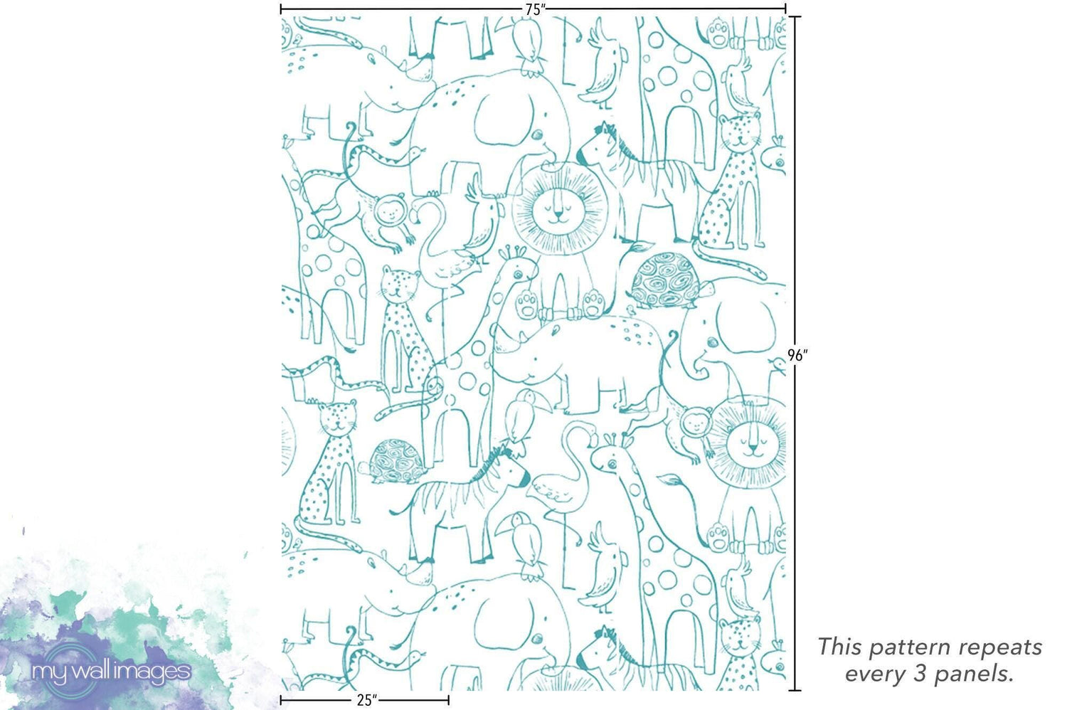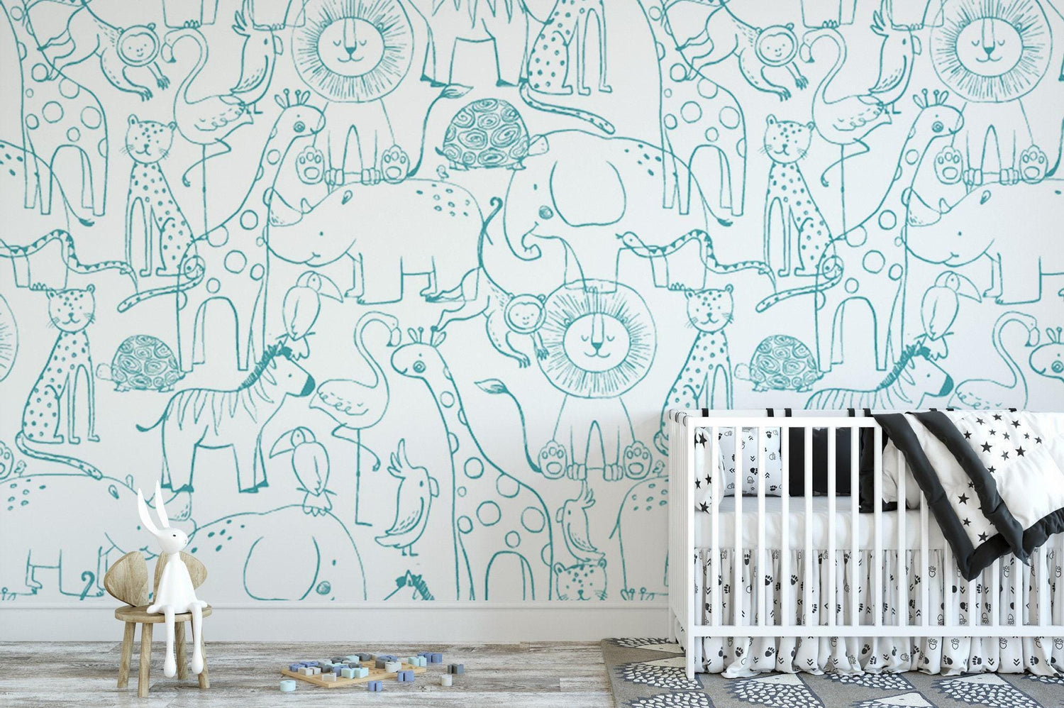 Safari Animals, Removable Wallpaper, Wall Art, Peel and Stick Wallpaper, Kids Mural, Kids Room Wallpaper, Baby Decor, Animal Nursery