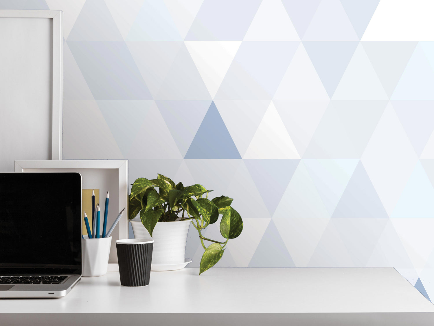 Modern Blue Wallpaper | Shades of Blue Triangles Peel and Stick Mural (MW1253)