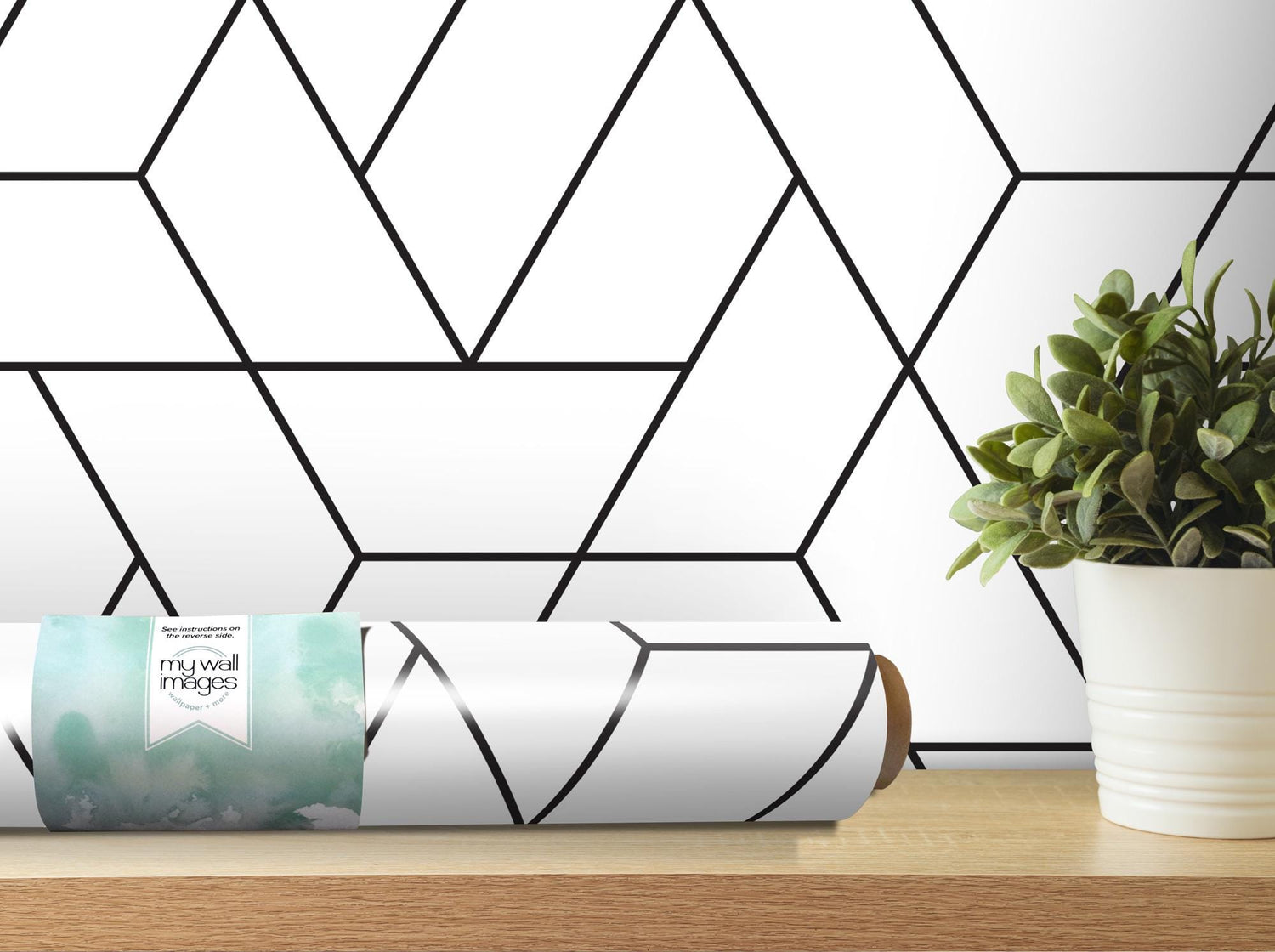 Simple Geometric Grid Style Black and White Minimalist Removable Wallpaper, Wall Art, Peel and Stick Wallpaper, Room Decor, Accent