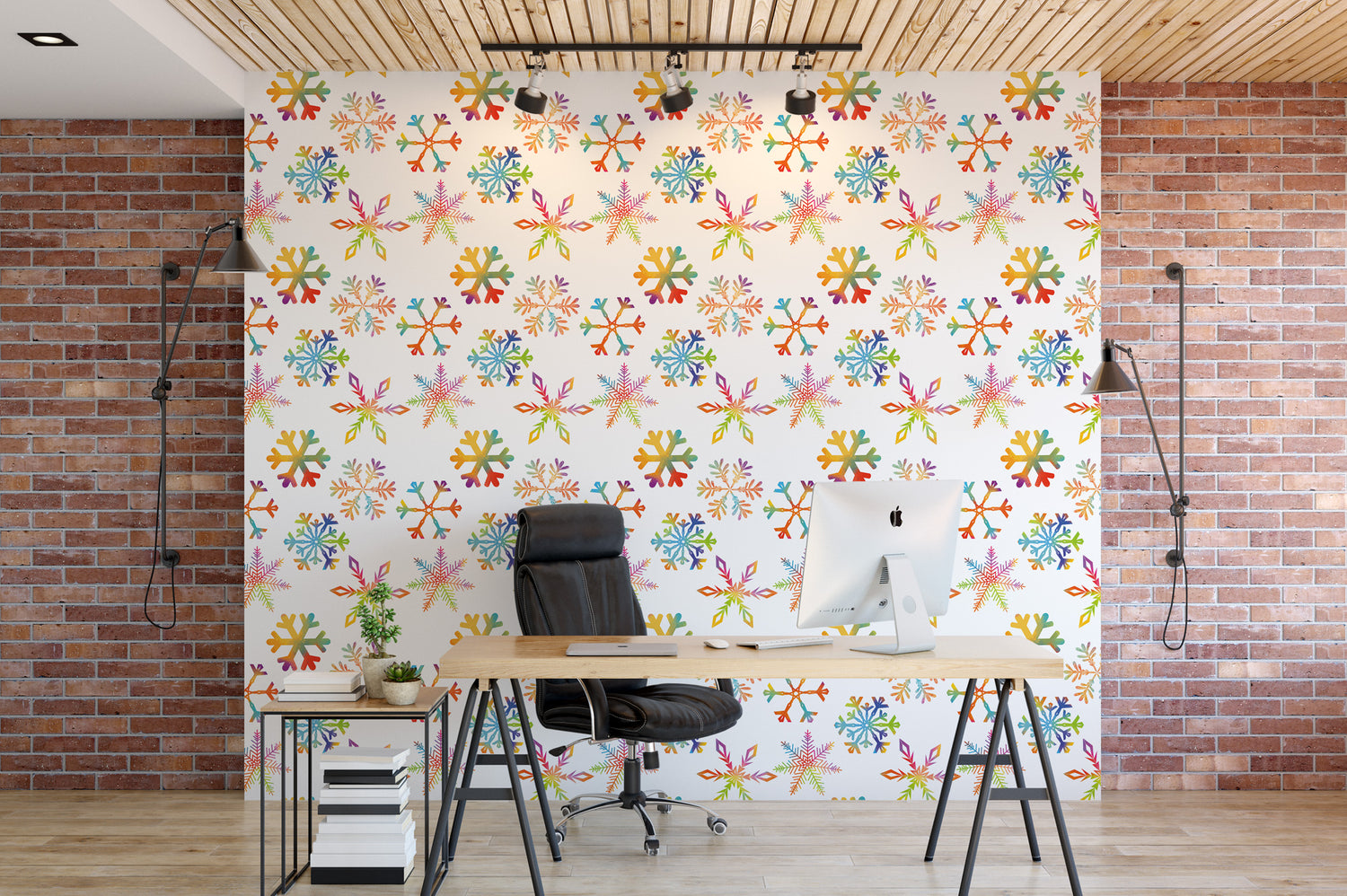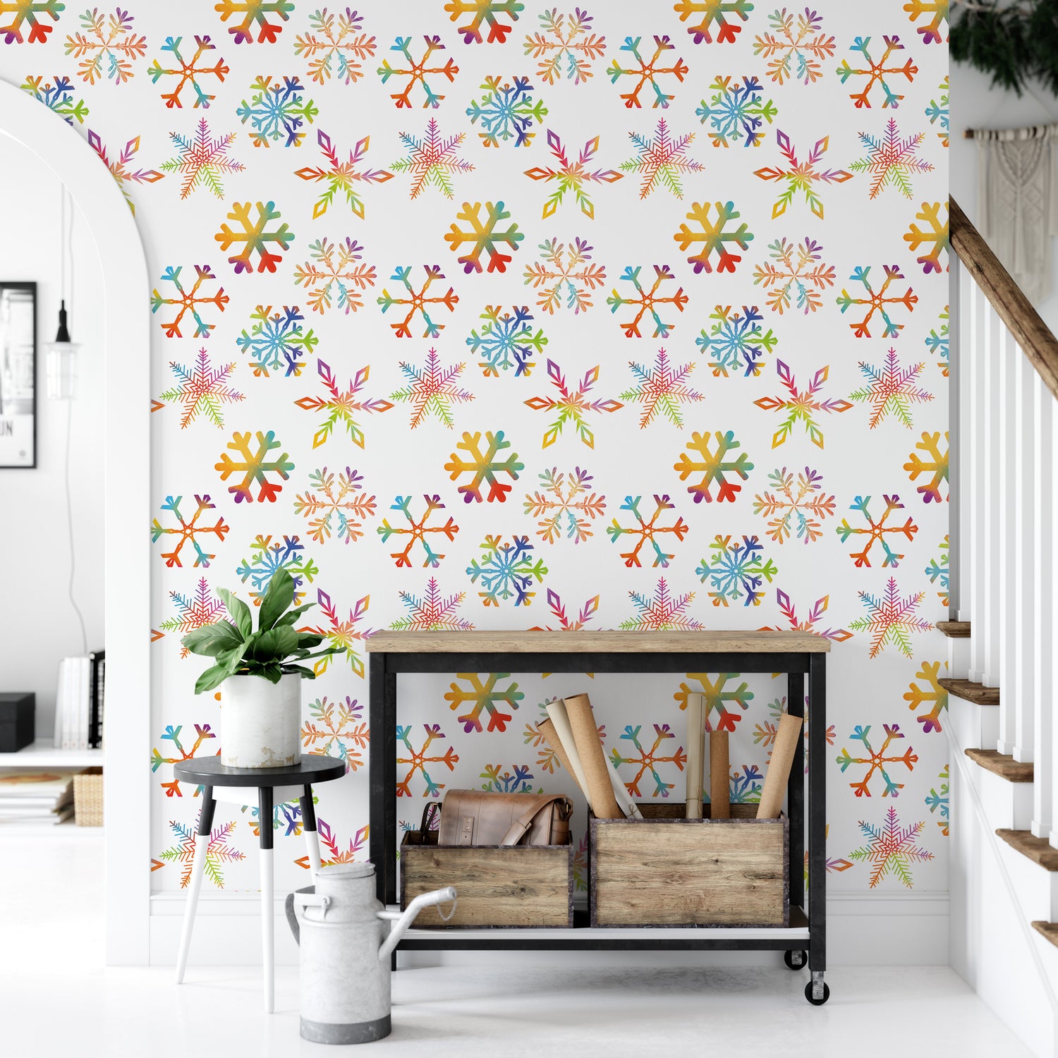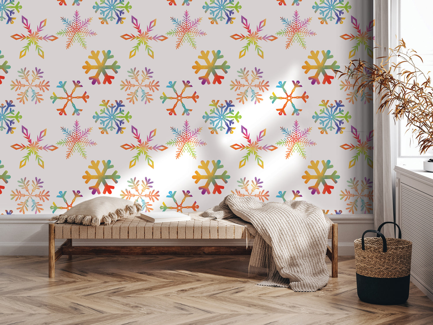 Christmas Peel and Stick Wallpaper | Colorful Snowflakes Mural (MW1933)