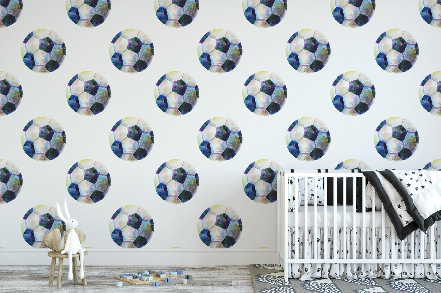 Soccer Balls Watercolor Removable Wallpaper, Wall Art, Peel and Stick Wallpaper, Sports Mural, Soccer Wallpaper, Futbol Decor Art
