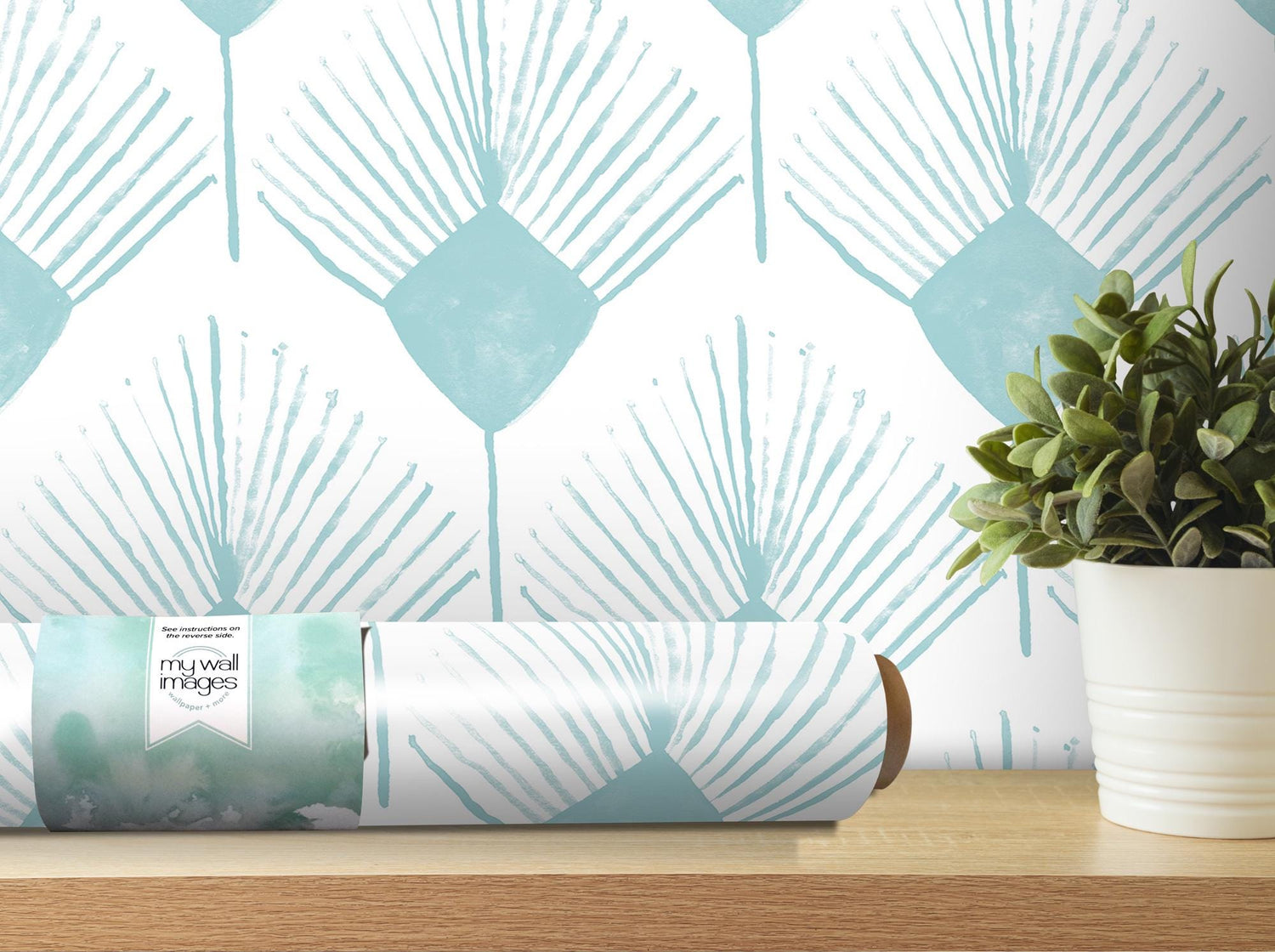 Soft Turqoise Diamond Boho Spray Removable Wallpaper, Peel and Stick Wallpaper, Wall Art, Wall Decor