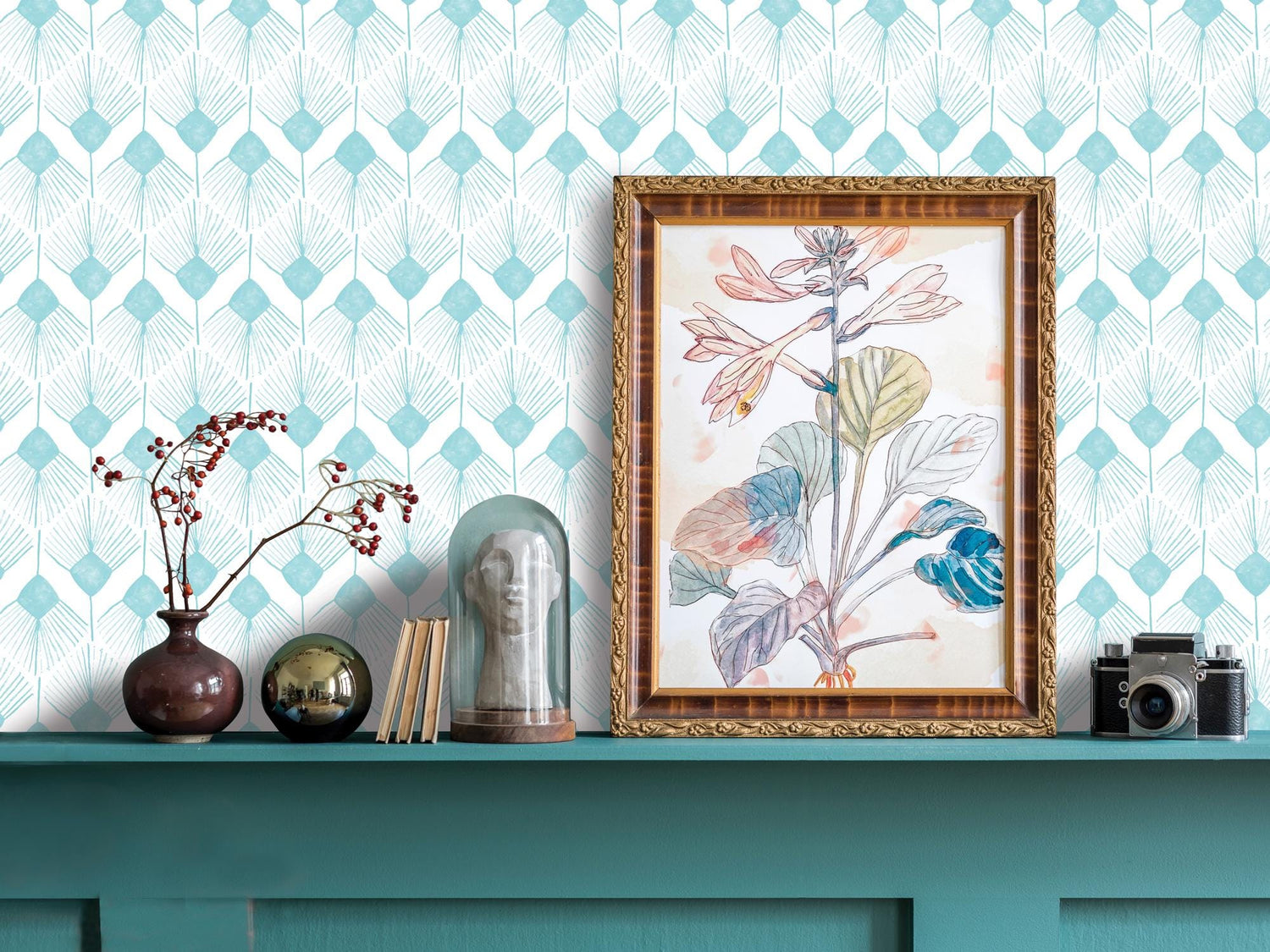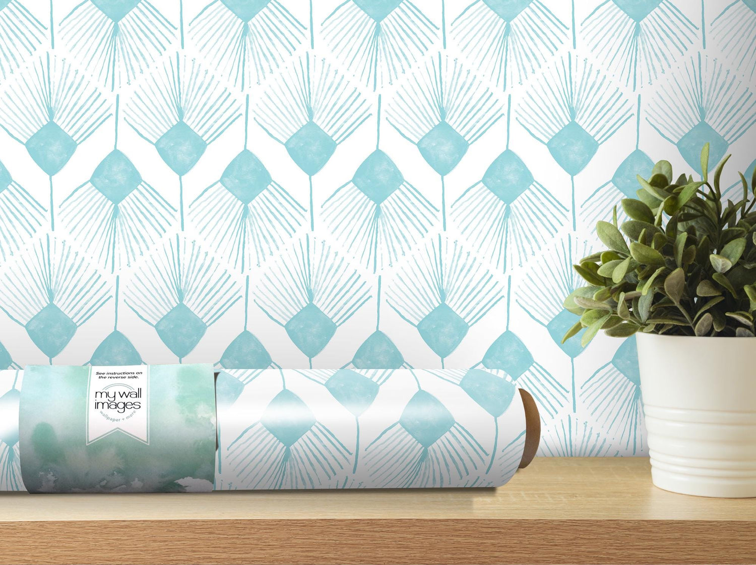 Soft Turquoise Zig Zag Diamond Boho Spray Removable Wallpaper, Peel and Stick Wallpaper, Wall Art, Wall Decor
