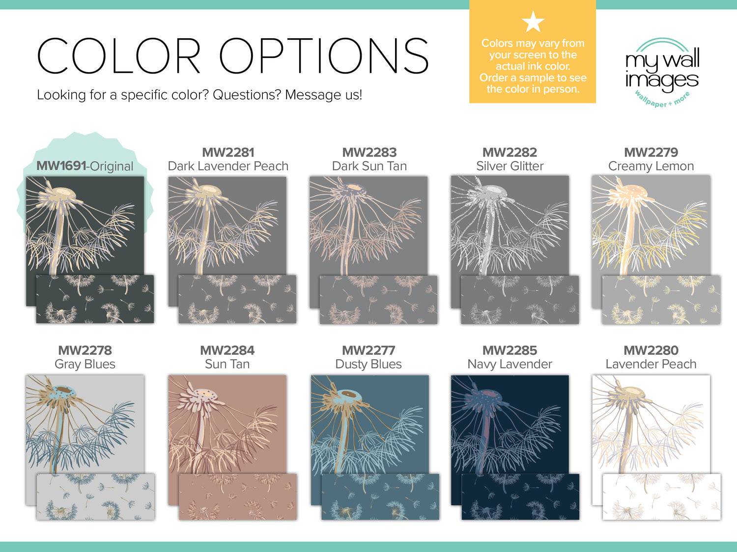 - COLOR: Colors on your screen may vary from the actual printed wallpaper. SAMPLES are highly recommended to see the exact color and materials.
