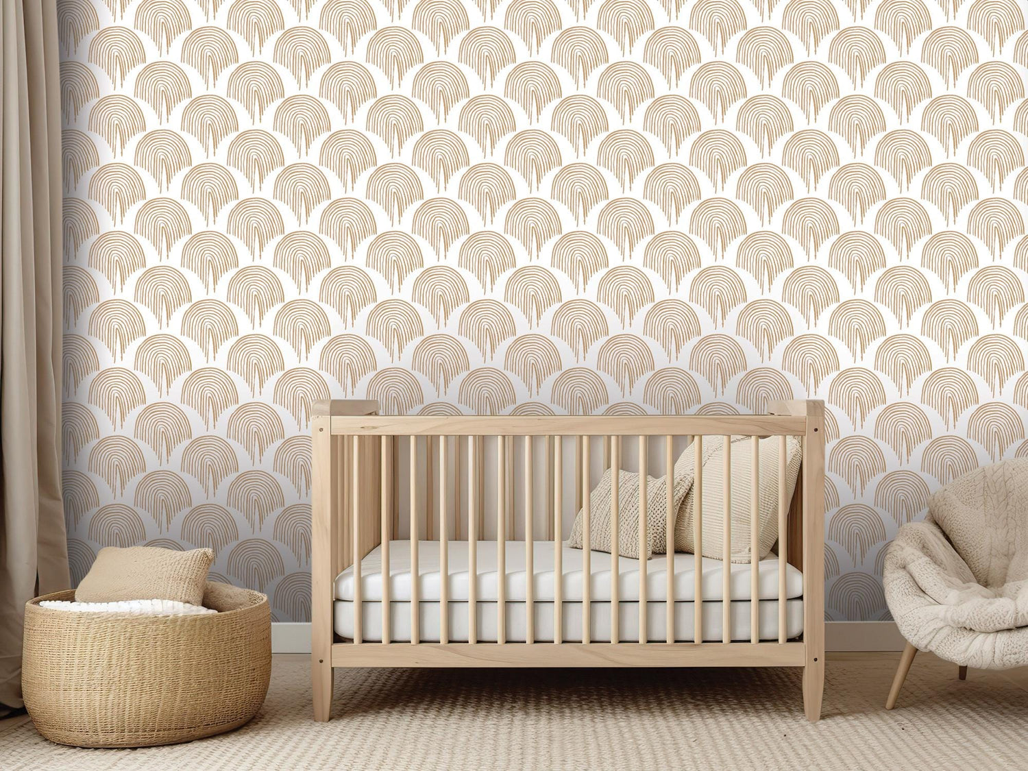 Tan Boho Floating Rainbow Removable Wallpaper, Wall Art, Peel and Stick Wallpaper, Wall Decor, Bathroom, Gender Neutral, Modern, MW2115