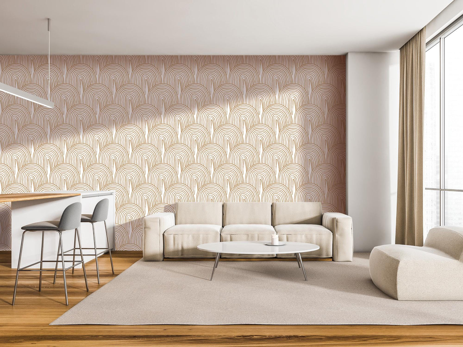 Tan Boho Watercolor Rainbow Removable Wallpaper, Wall Art, Peel and Stick Wallpaper, Wall Decor, Accent Wall, Living Room, Modern Art MW2126