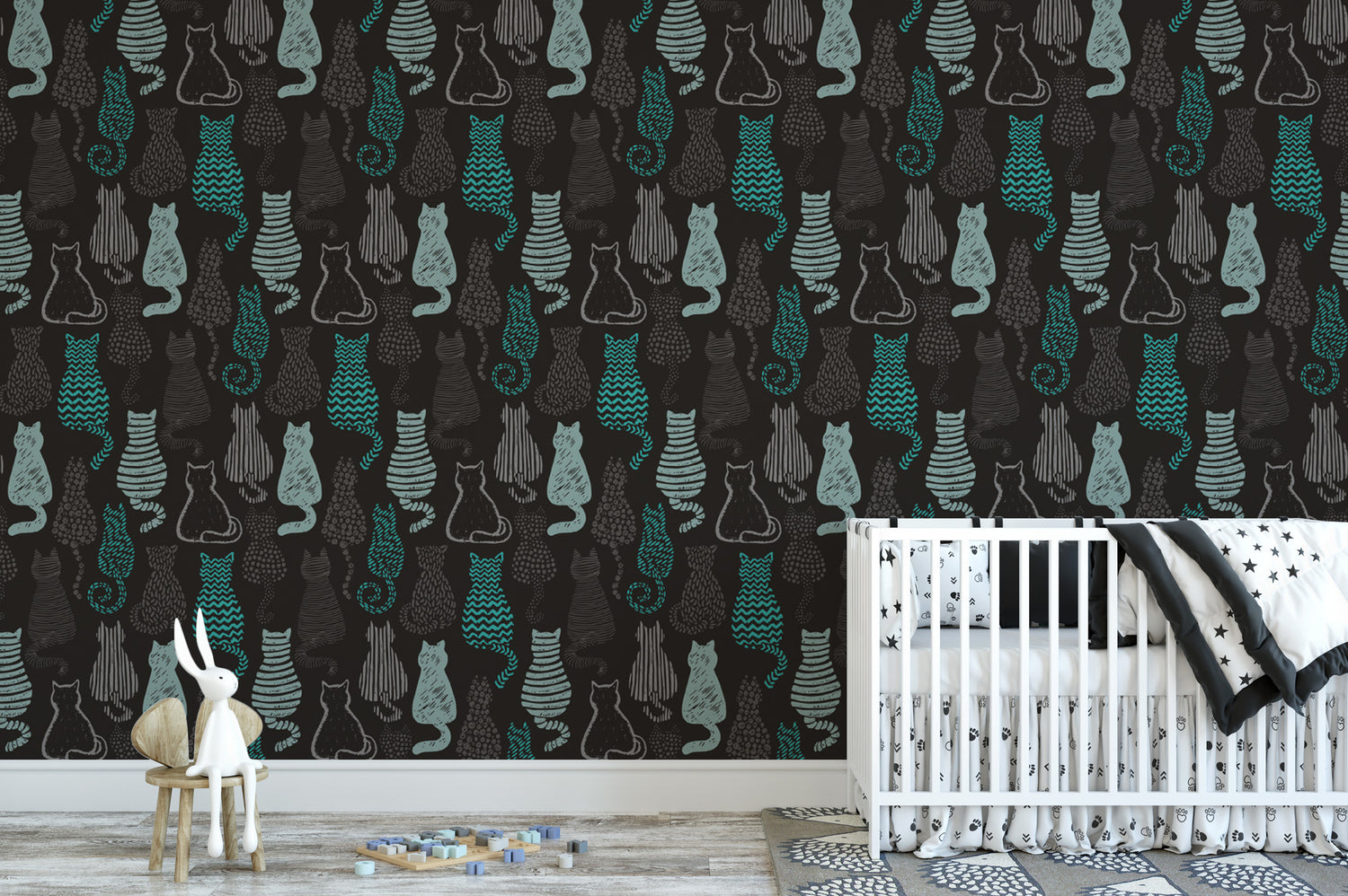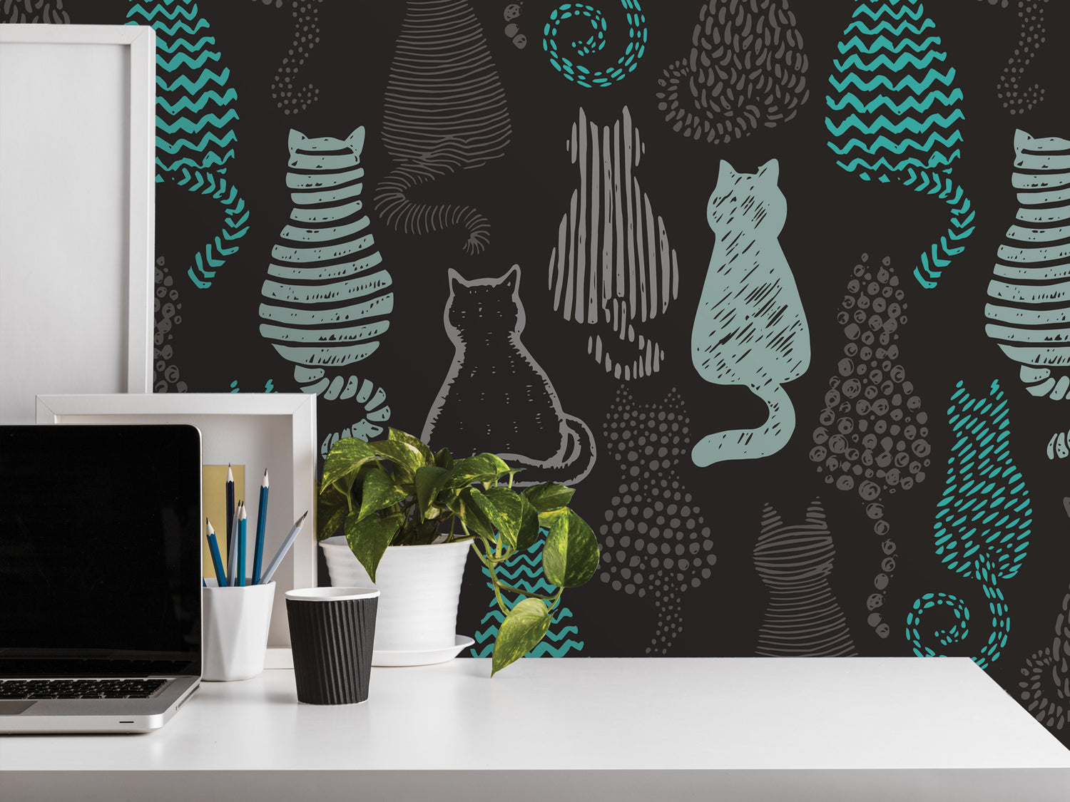 Textured Cats, Mod Kittens Wallpaper | Peel and Stick Wallpaper | Cat Decor (MW1804)