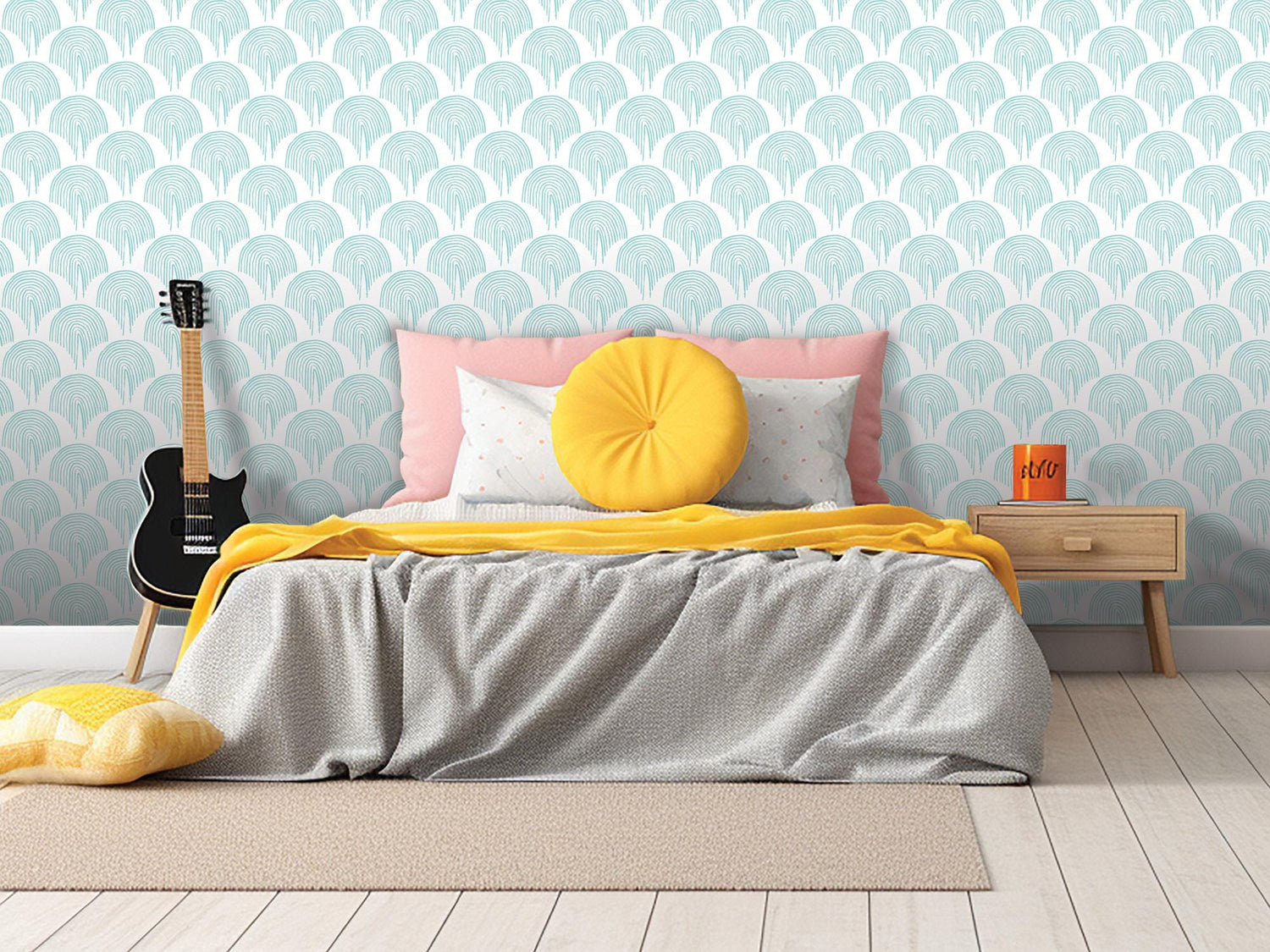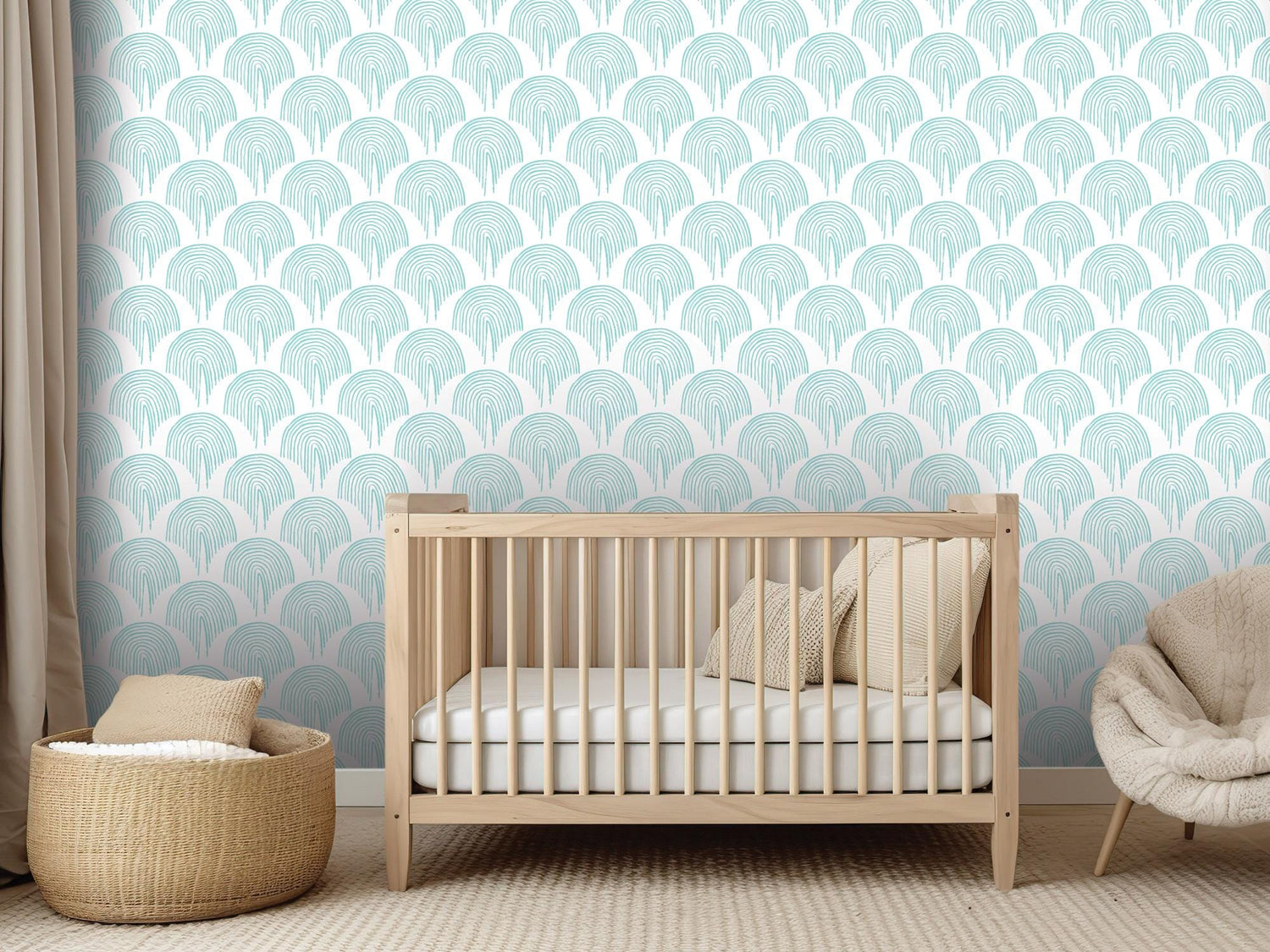 Turquoise Boho Floating Rainbow Removable Wallpaper, Wall Art, Peel and Stick Wallpaper, Wall Decor, Teen Room, Kids Room, Modern, MW2113