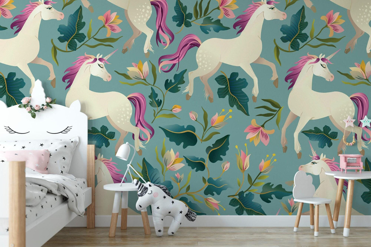 Unicorns Removable Wallpaper, Wall Art, Peel and Stick Wallpaper, Unicorn Mural, Nursery Wallpaper, Girls Room Decor, Nursery Art