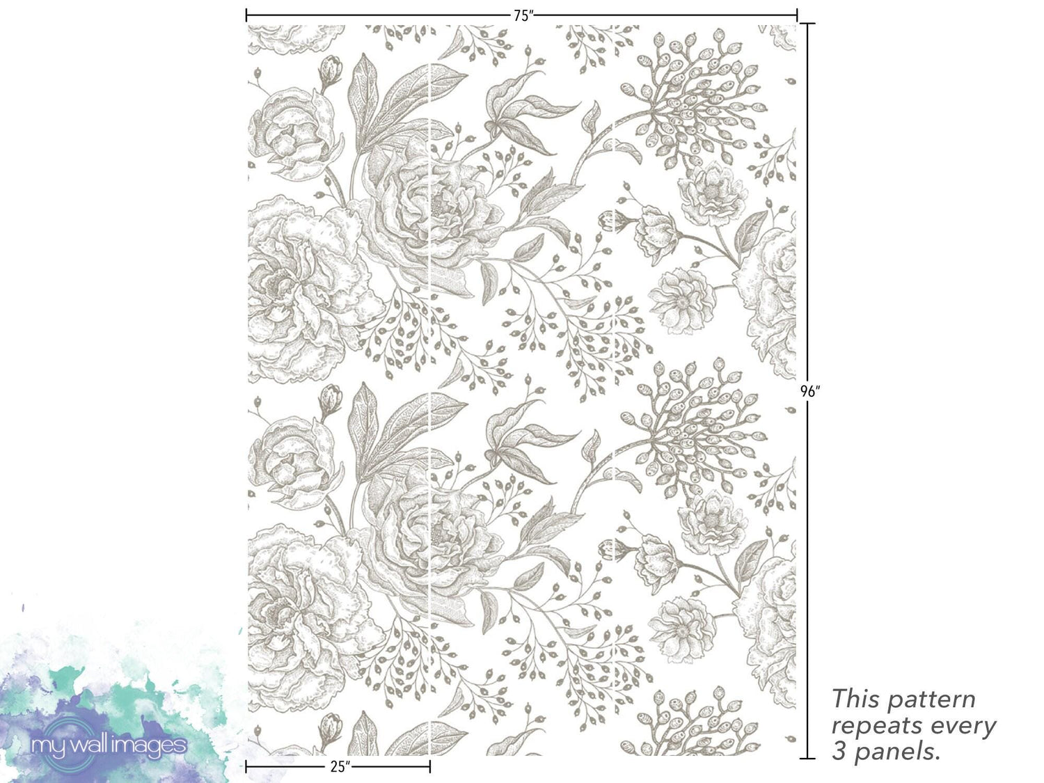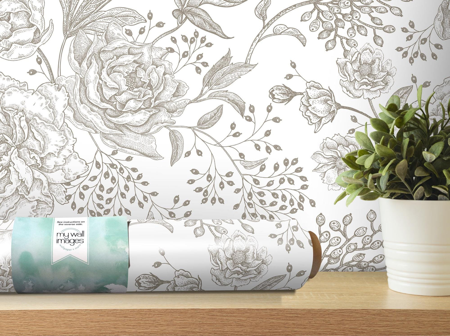 Vintage Floral Neutral Removable Wallpaper, Wall Art, Peel and Stick Wallpaper, Wall Decor, Mural Room Decor, Floral Botanical Art