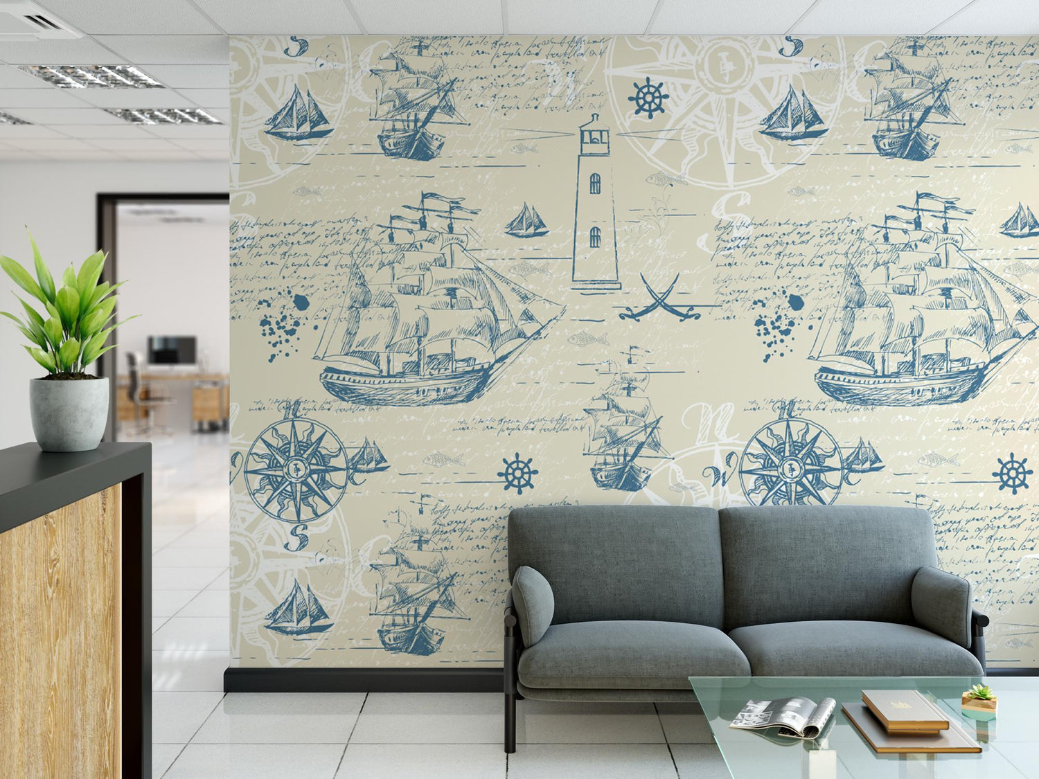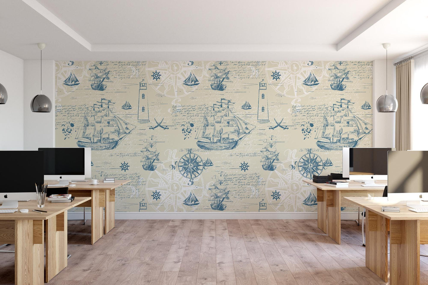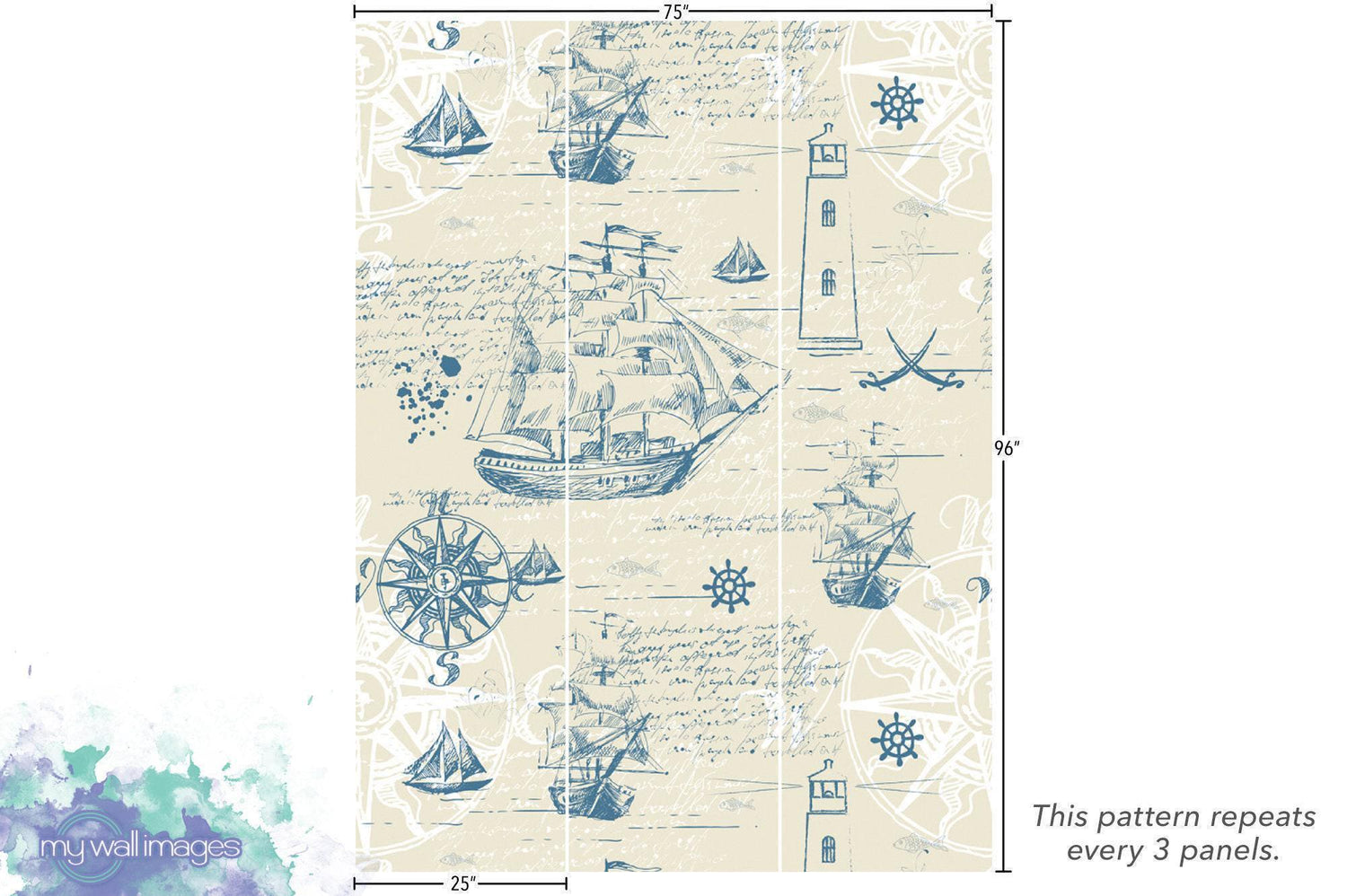 Vintage Nautical Map, Removable Wallpaper, Wall Art, Peel and Stick Wallpaper, Wall Mural, Nautical Decor, Nautical Art, Beach House
