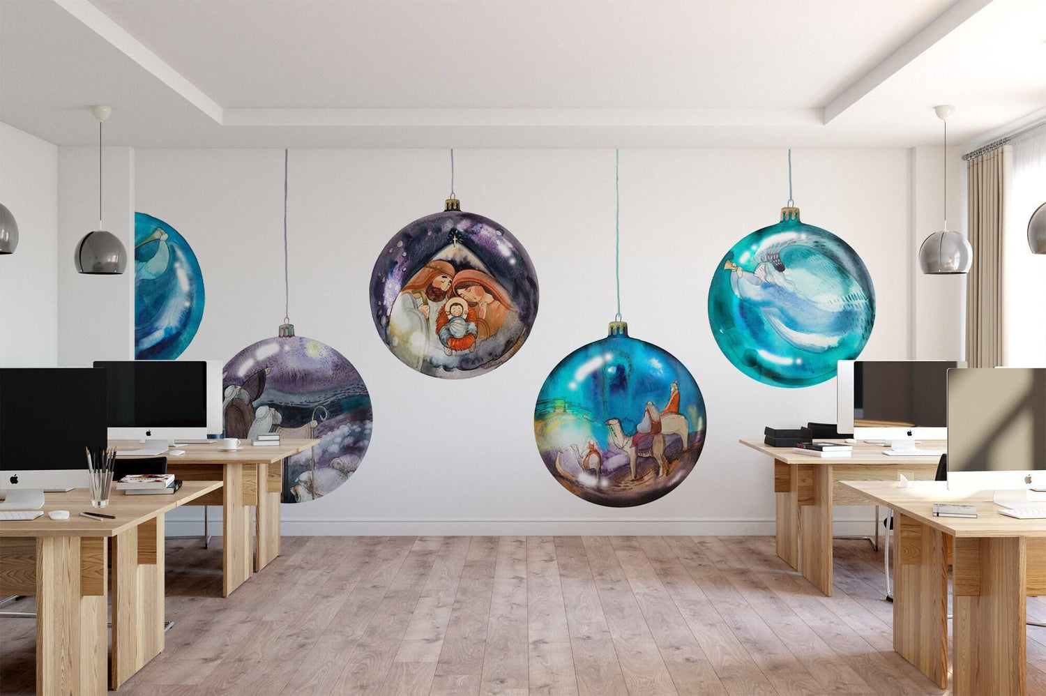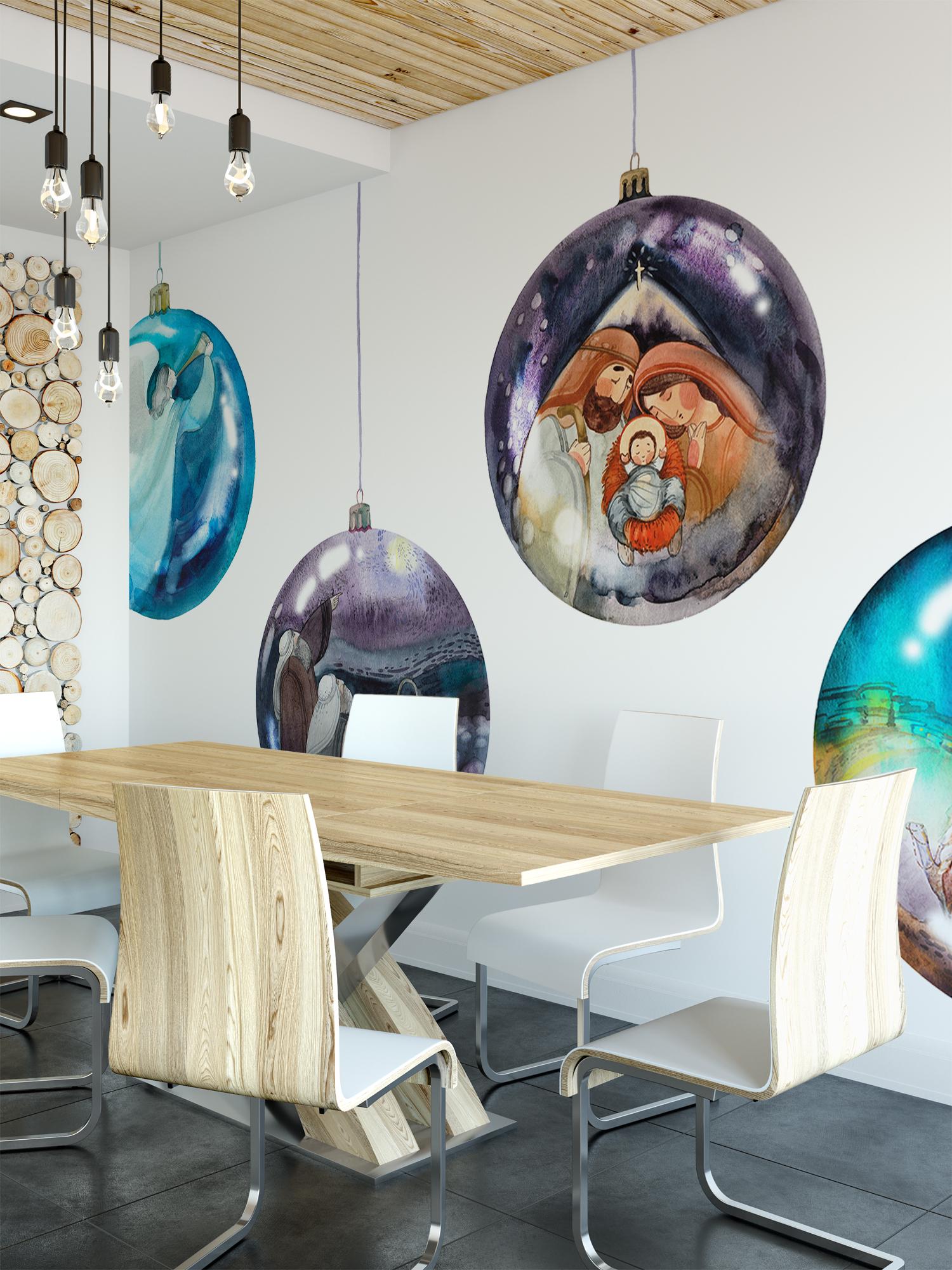 Watercolor Christmas Nativity Balls Mural Wallpaper MW1934