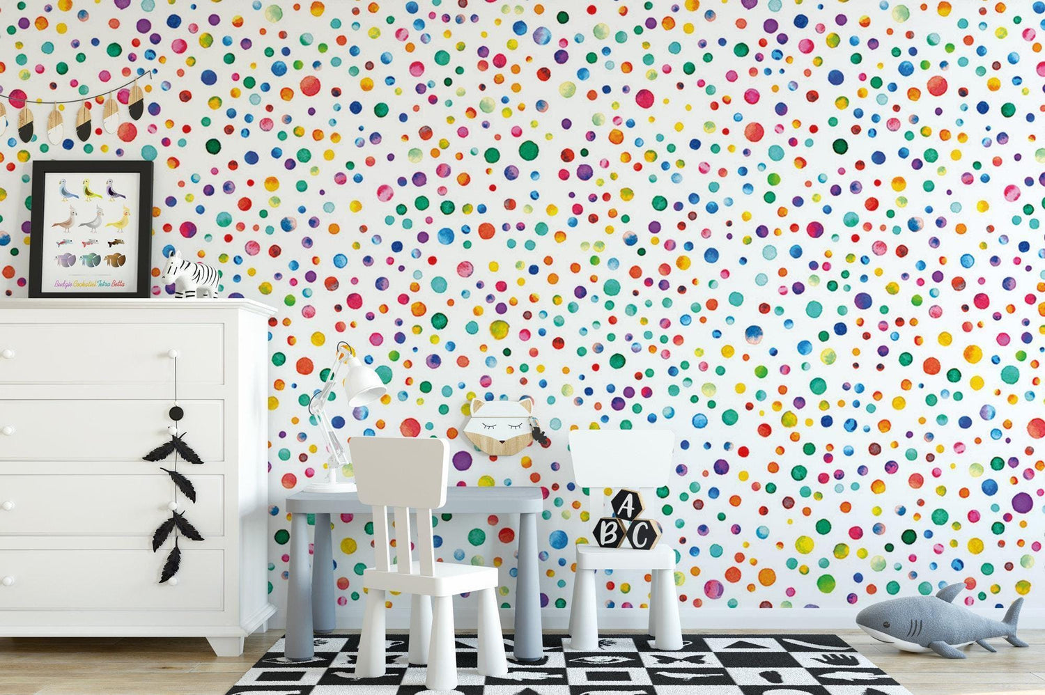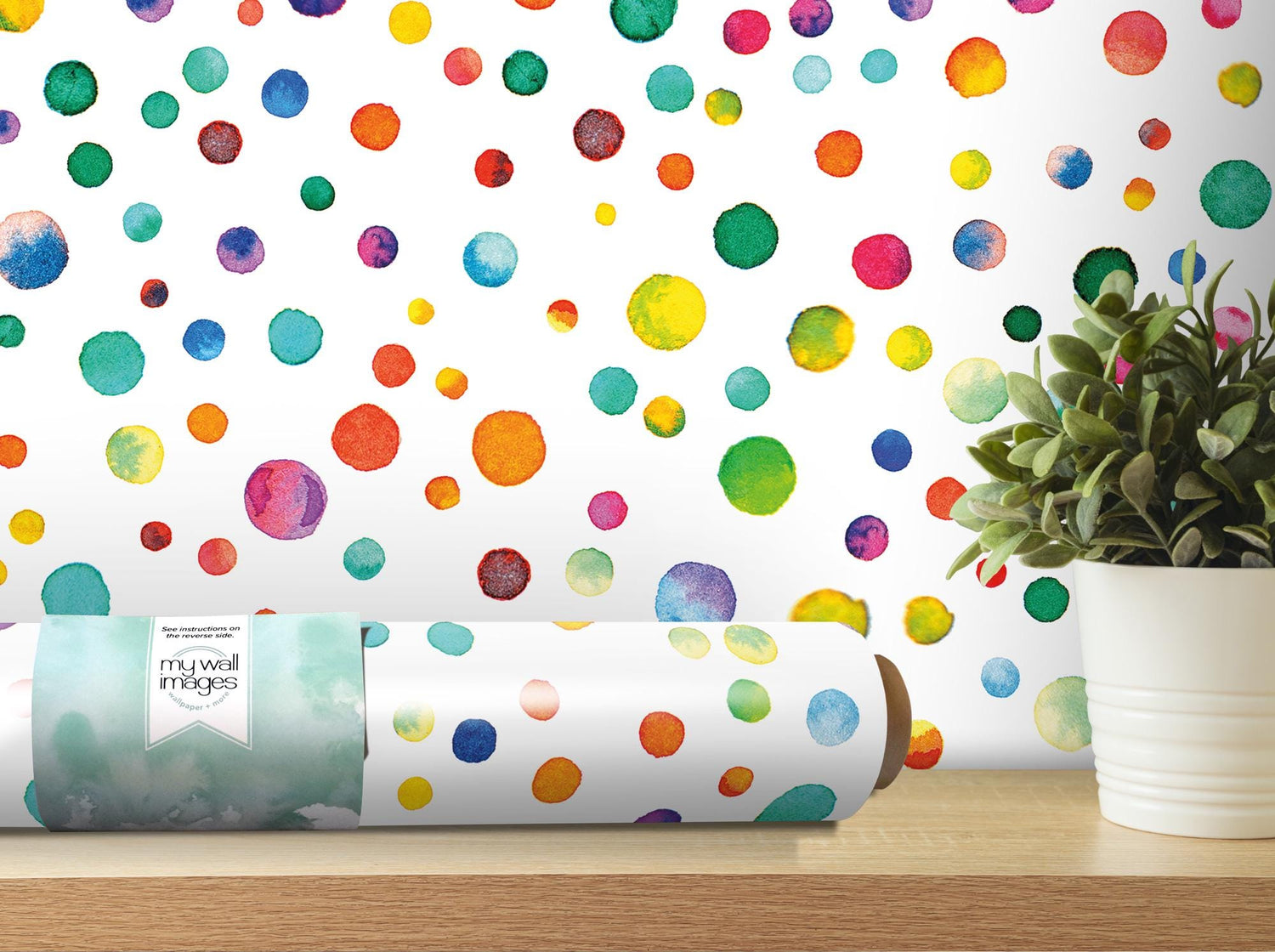 Watercolor Confetti Circles Removable Wallpaper, Wall Art, Peel and Stick Wallpaper, Room Decor, Accent, Rainbow Polka Dots, Nursery