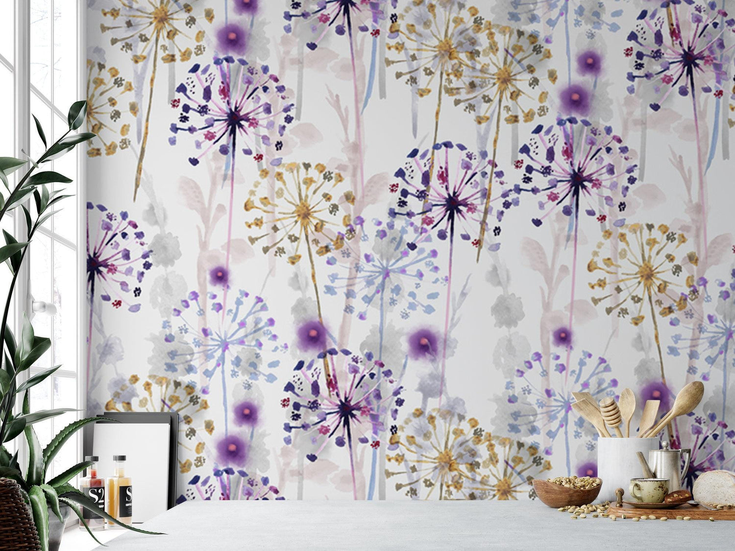 Delicate Purple Floral Removable Wallpaper, Peel and Stick Wallpaper, Wall Mural, Accent Wall, Wall Decor, Floral Wallpaper