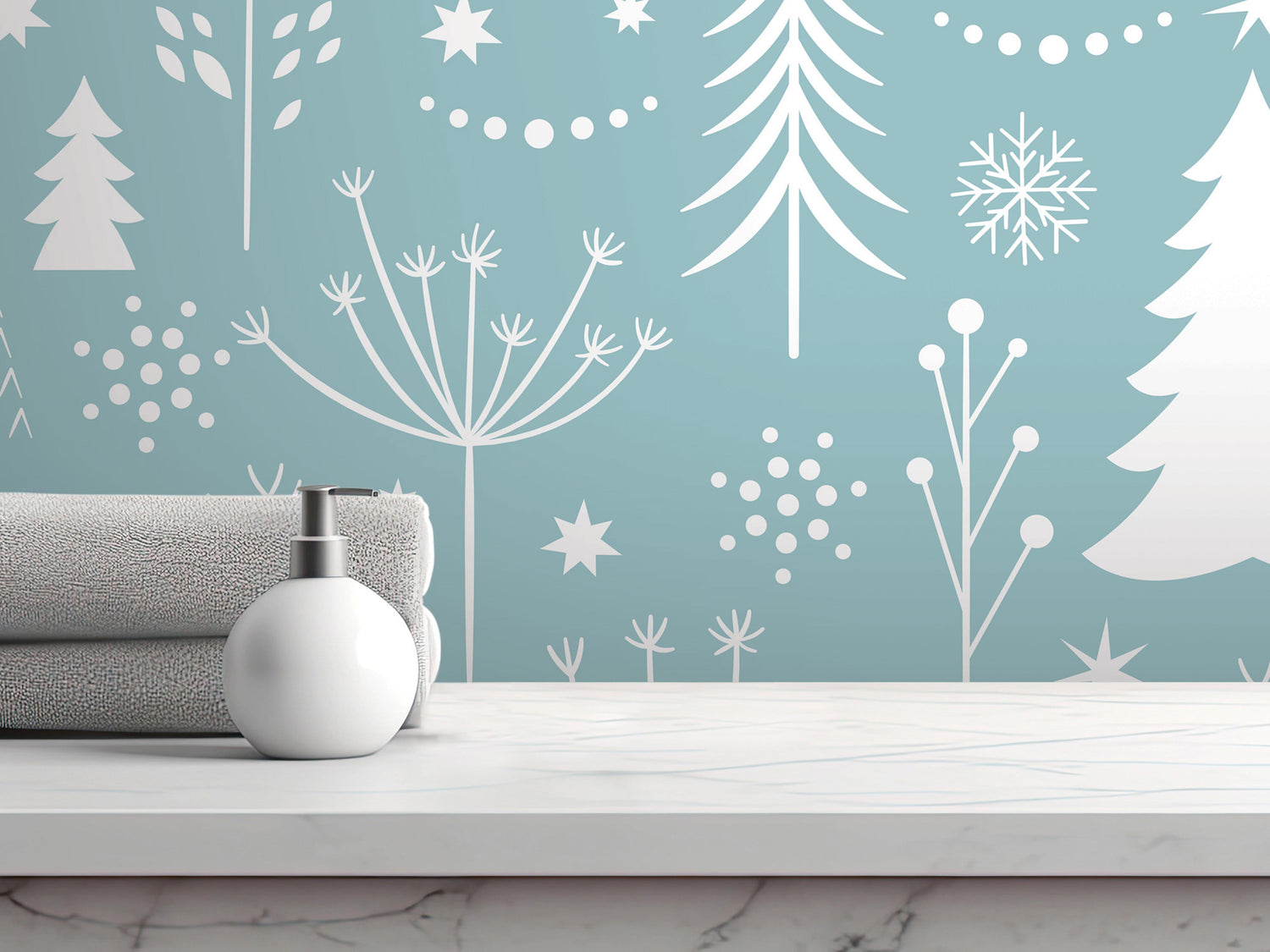 White Christmas Trees Wallpaper | Peel and Stick Mural (MW1204)