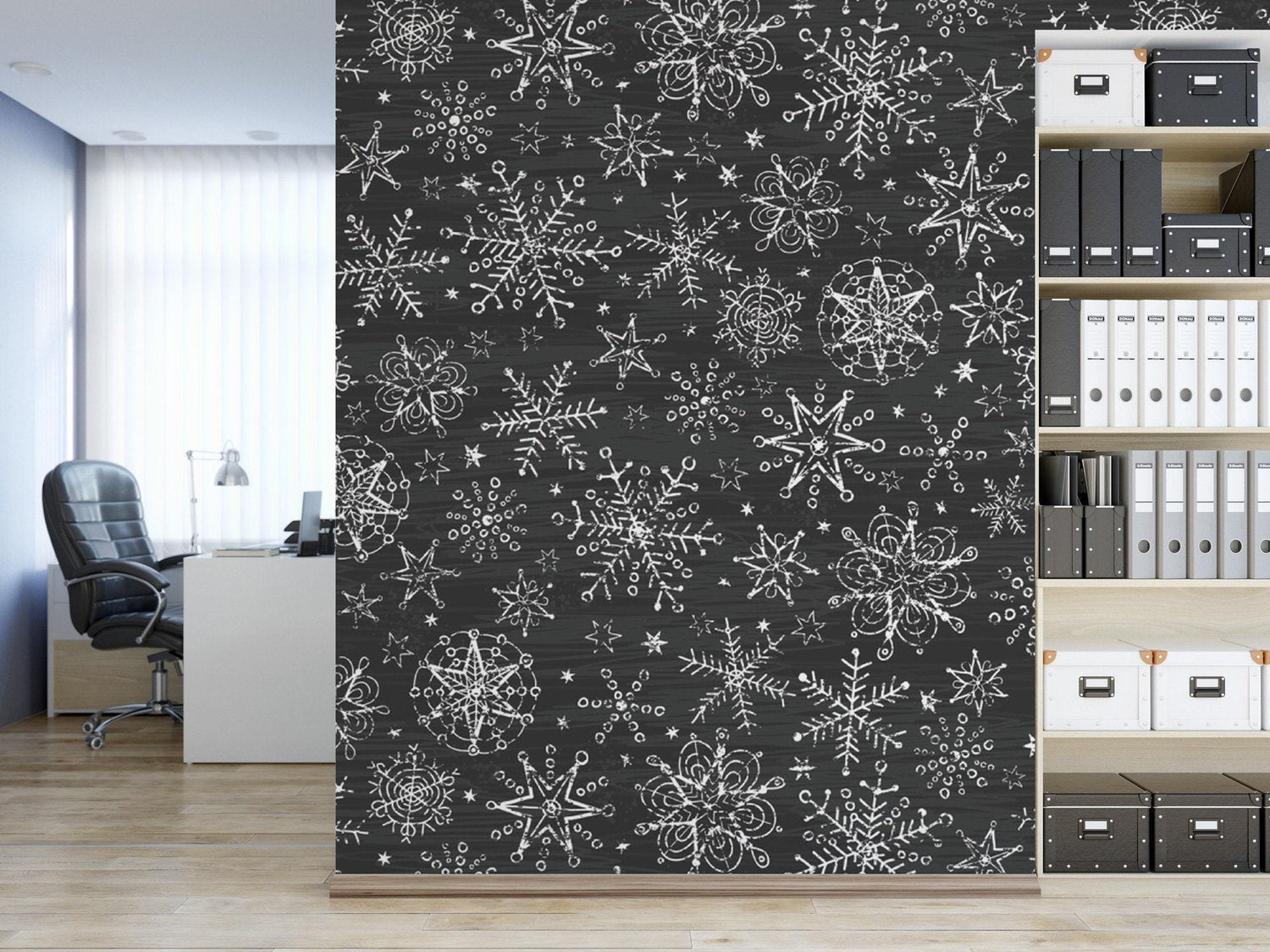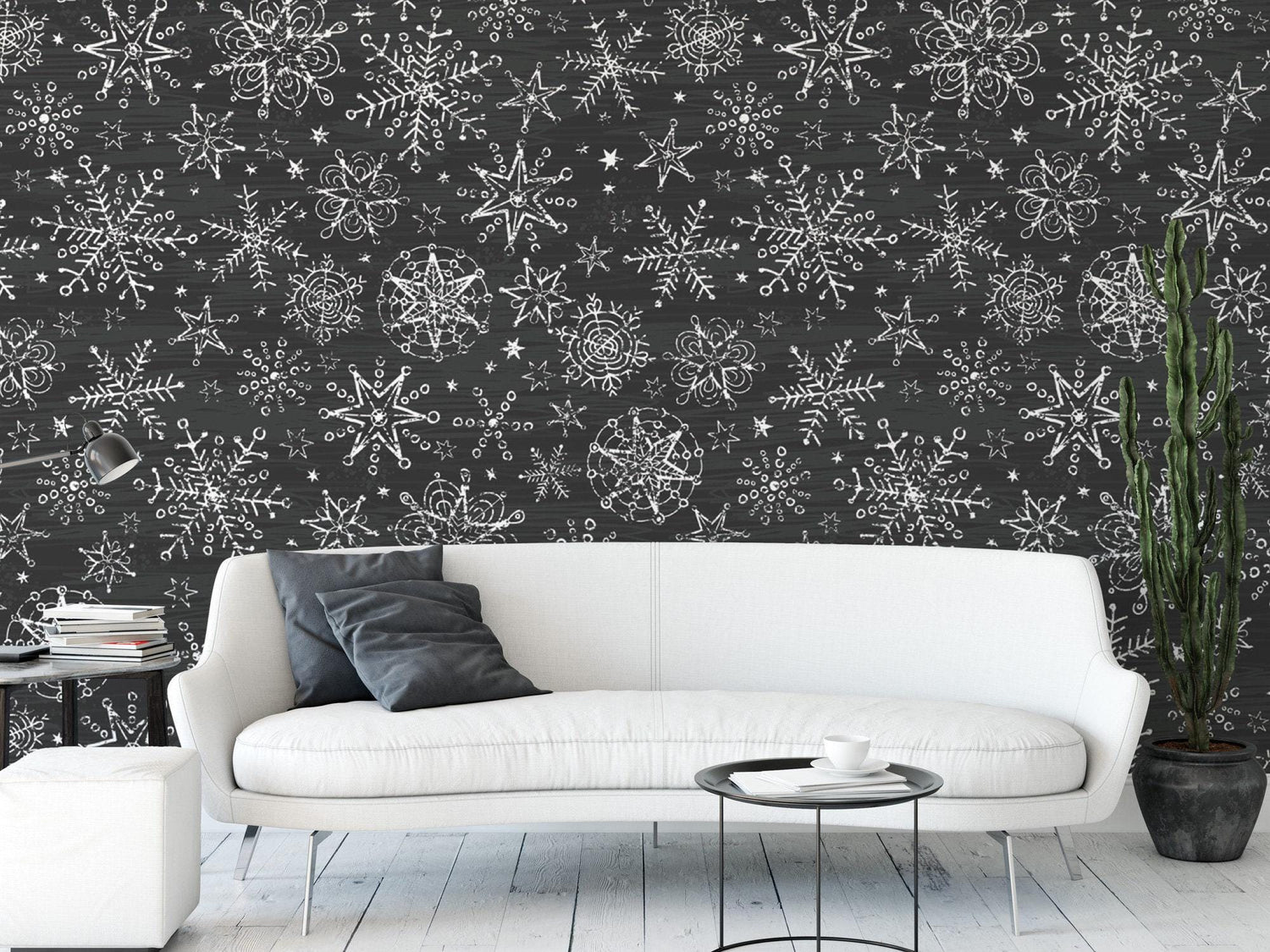 White Snowflakes Removable Wallpaper, Wall Art, Peel and Stick Wallpaper, Mural, Accent Holiday Wallpaper, MW1645