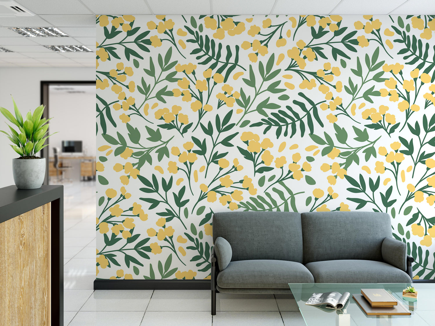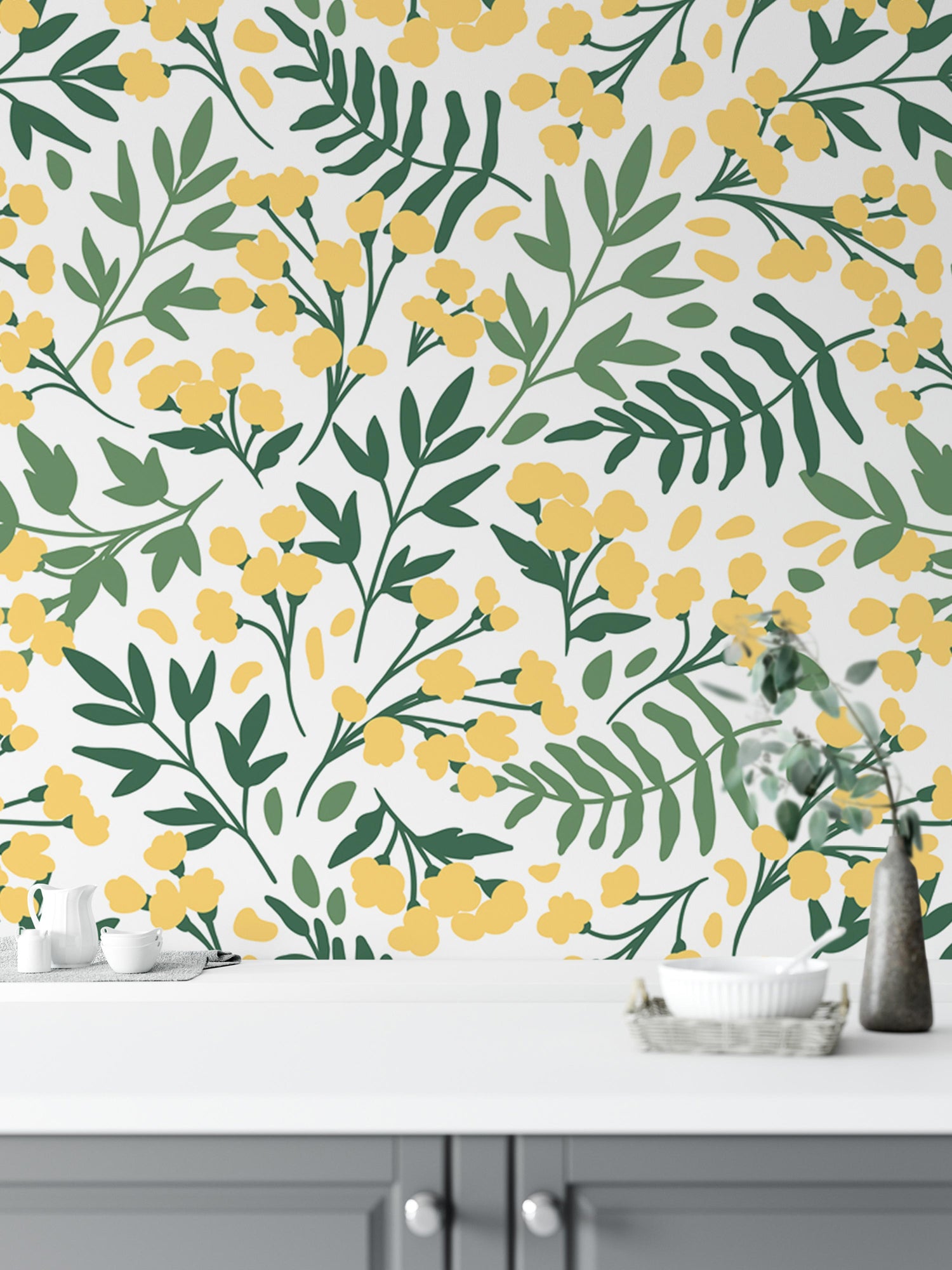 Yellow and Green Folk Art Floral Wallpaper | Peel and Stick Mural (MW1197)