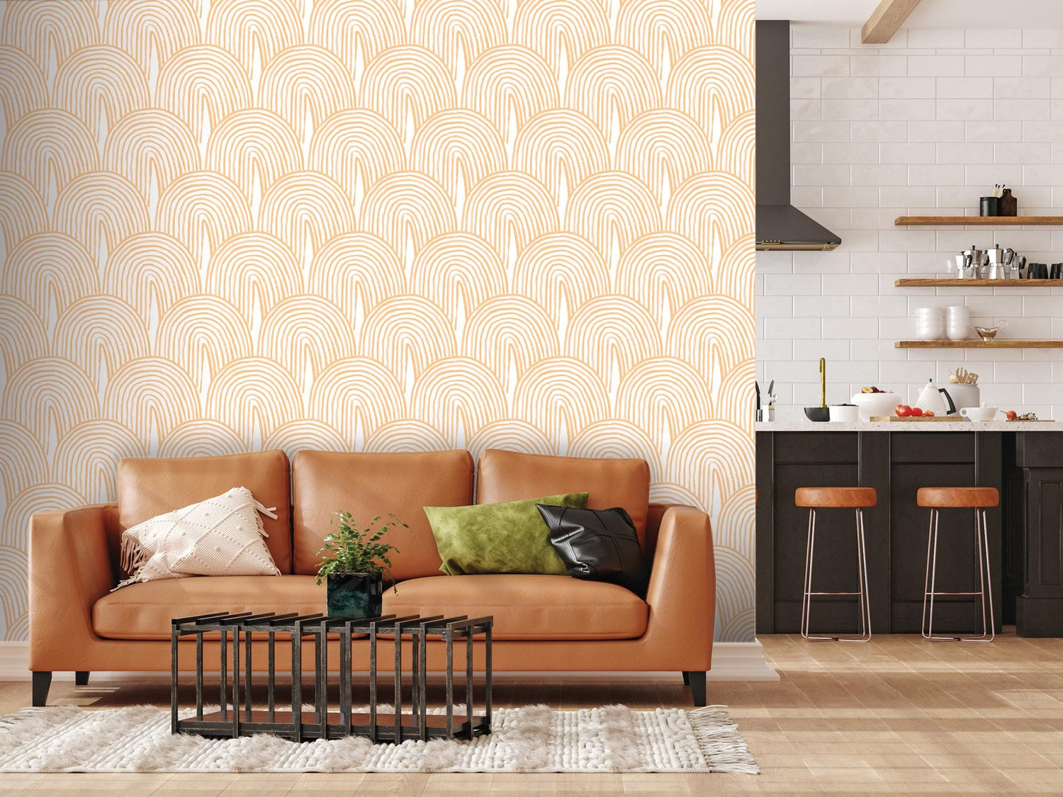 Yellow Boho Watercolor Rainbow Removable Wallpaper, Peel and Stick Wallpaper, Wall Art, Wall Decor