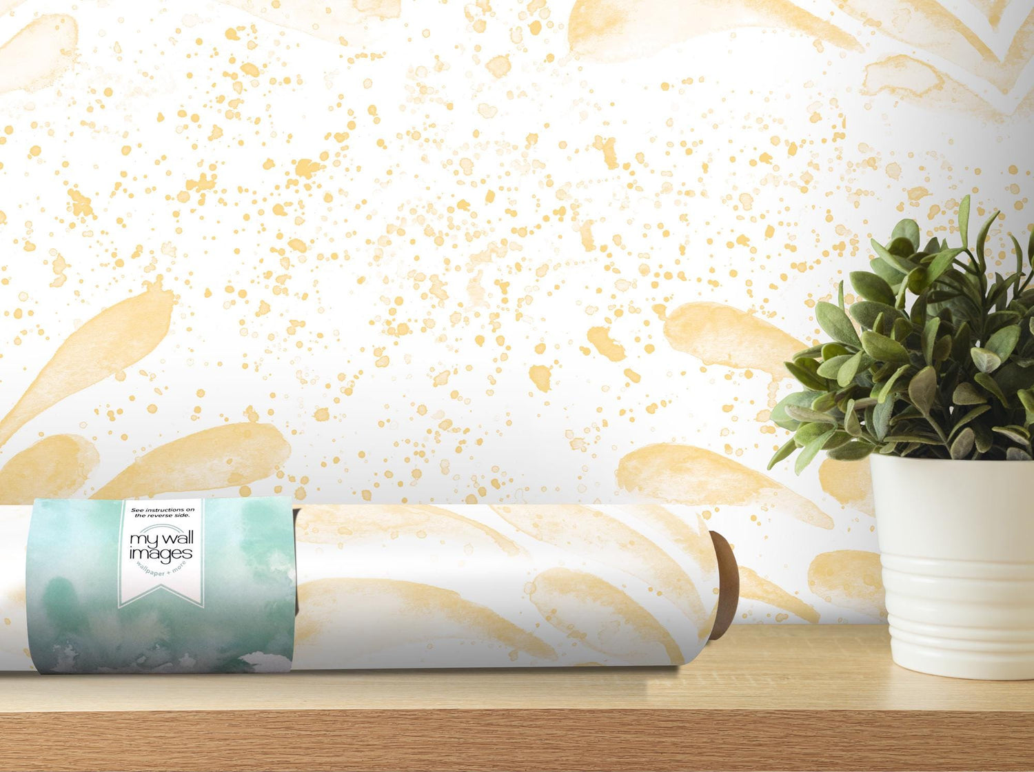Yellow Splashy Watercolor Fleur Removable Wallpaper, Wall Art, Peel and Stick Wallpaper, Wall Decor, Nursery, Teen, Kids Room, MW2096