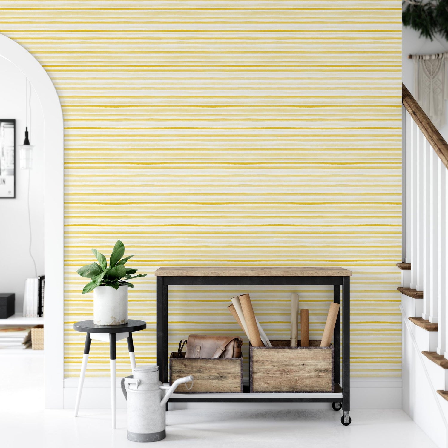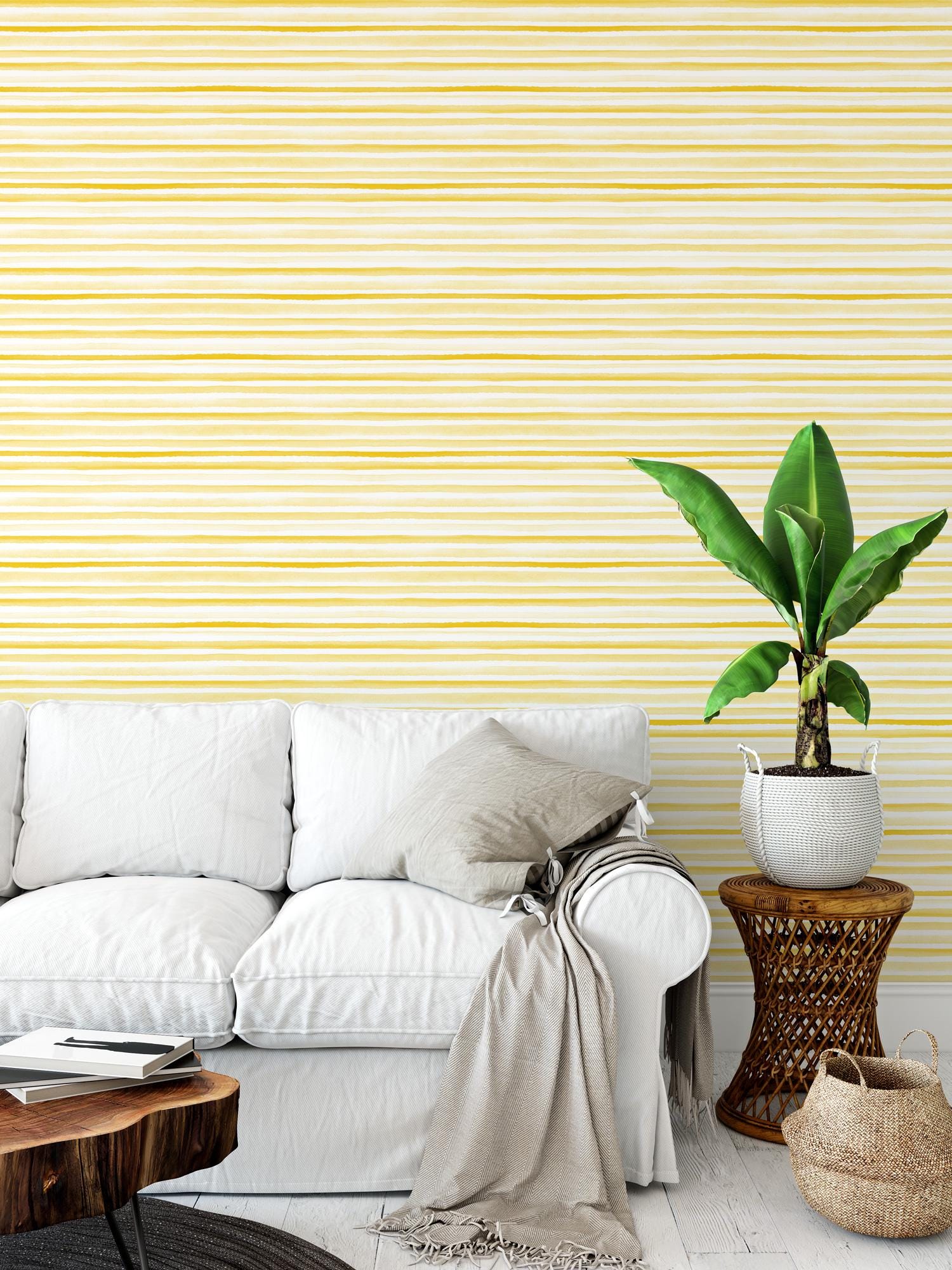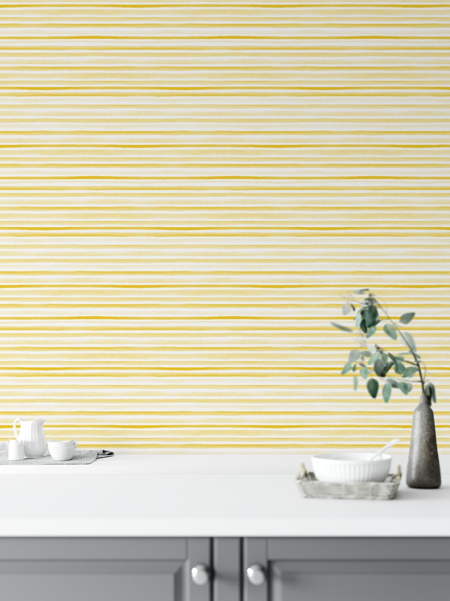 Yellow Watercolor Stripes Removable Wallpaper, Wall Art, Peel and Stick Wallpaper, Room Decor, Nursery Decor, Accent Wall